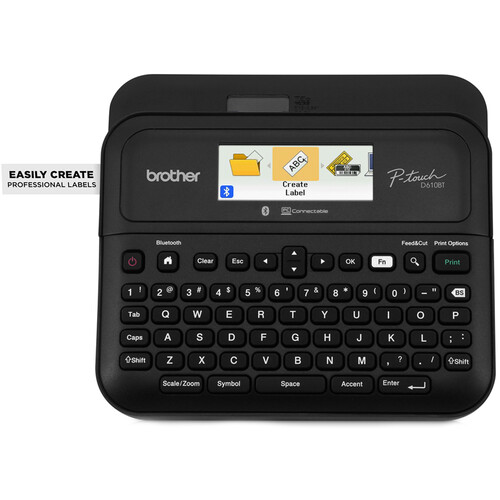 The Brother P-touch PT-D610BT Business Professional Connected Label Maker with Bluetooth connectivity offers fast printing with sharp graphics on TZe label tapes up to 1" (24 mm).