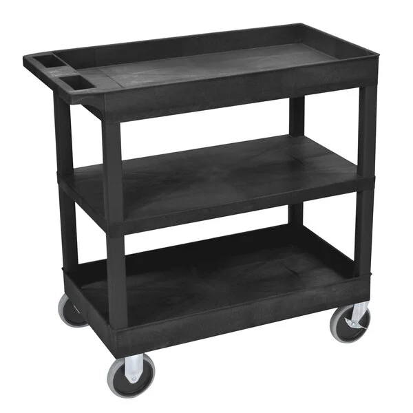 Luxor EC121HD-B Black Two Tub and One Flat Shelf Heavy-Duty Utility Cart