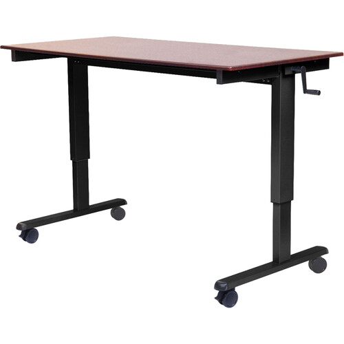 Promotes better posture, reduced back and neck pain, and better overall health48" x 29 1/2" top provides plenty of workspaceMobile design; adjustable height from 32 5/8” to 48 1/2" with casters installedHigh-speed crank system for easy adjustment from sitting to standingDurable melamine with PDF/PVC edge film and powder-coated steel frame