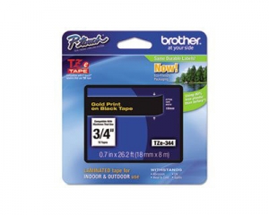 Brother TZE344 3/4in (18MM) Gold on Black Laminated Tape.