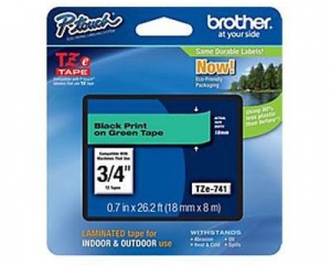 Brother TZe741, 3/4in (18MM) Black on Green Laminated Tape